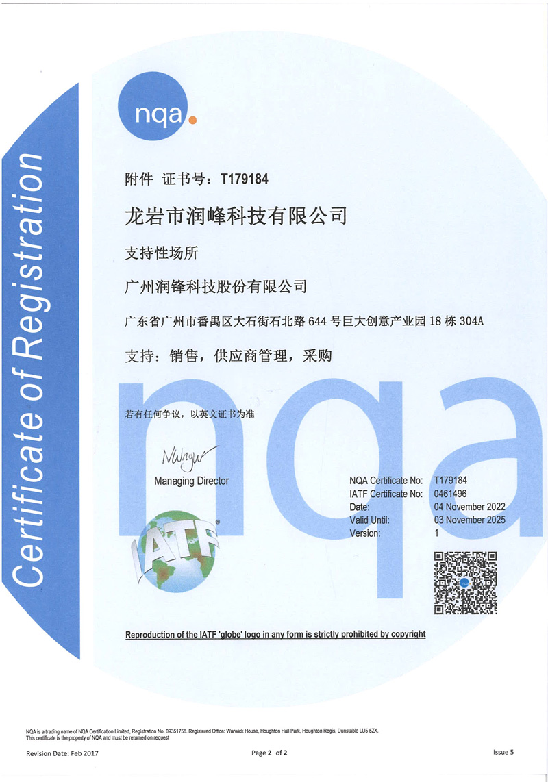 润锋总部位于广州,旗下有龙岩市润峰科技有限公司、润锋(佛山)新材料科技有限公司、润锋(香港)有限公司3家全资子公司,并在天津、合肥设立了办事处。润锋成立初期主要以商品贸易为主,后期转向自建工厂、自主研发生产为主,自有润锋/RF品牌系列产品。并广泛应用于新能源汽车动力电池、储能、半导体、计算机等高端领域。