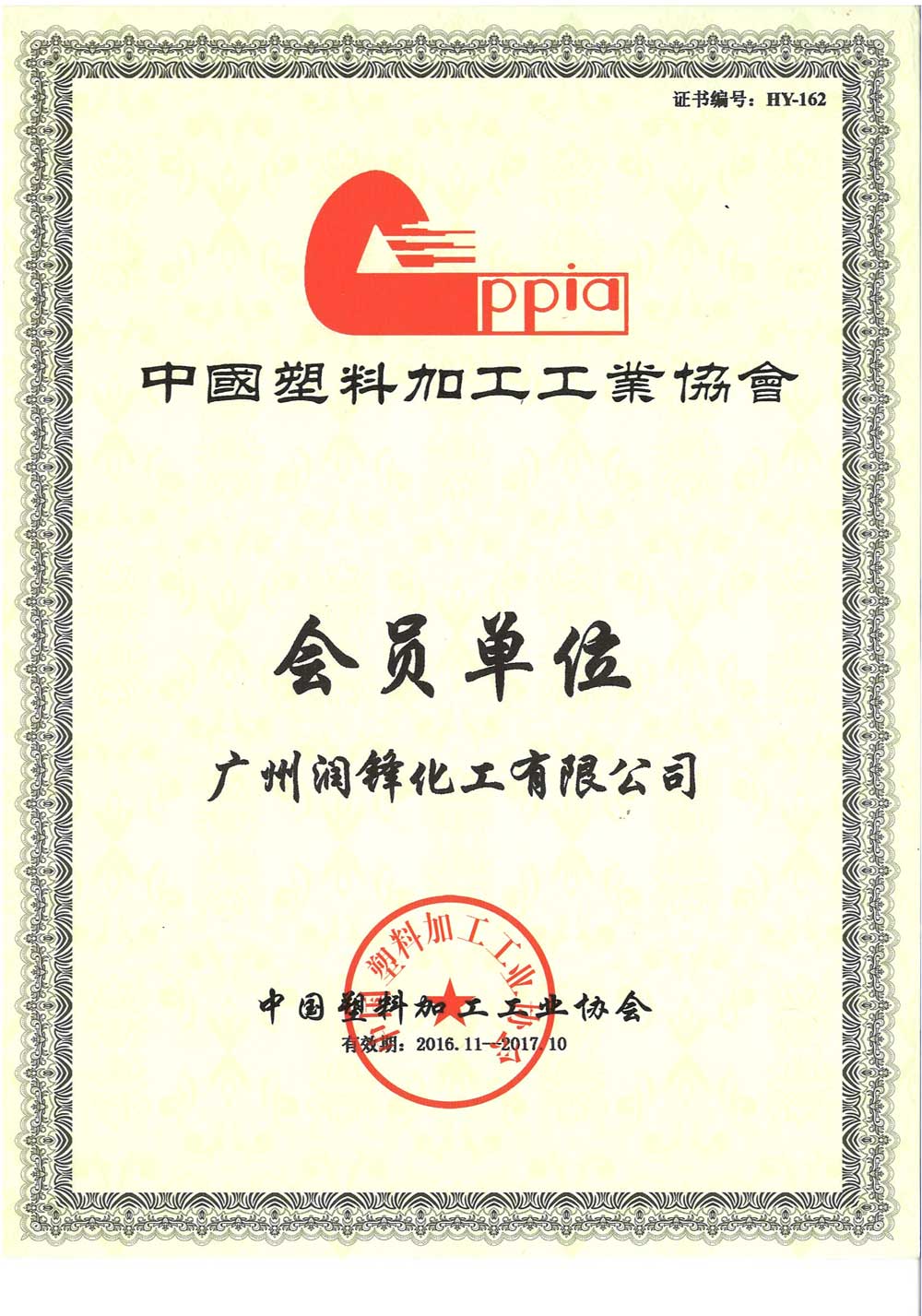 塑料加工工业协会会员证