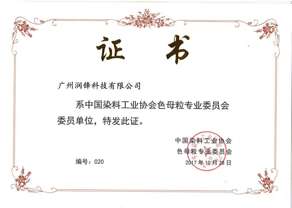 色母粒会员证书