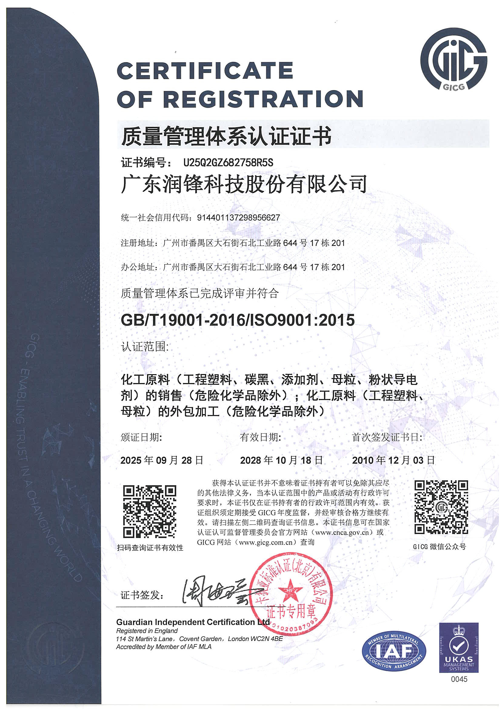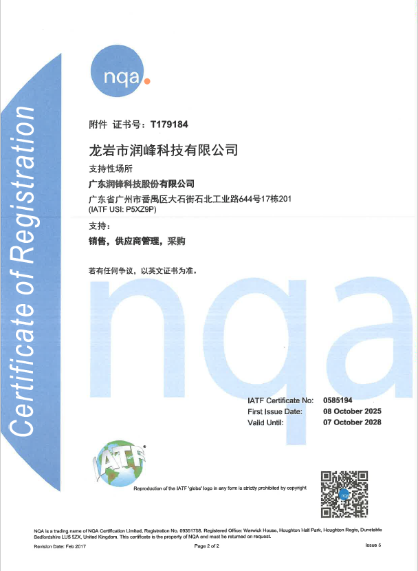 广东润锋16949体系证书
