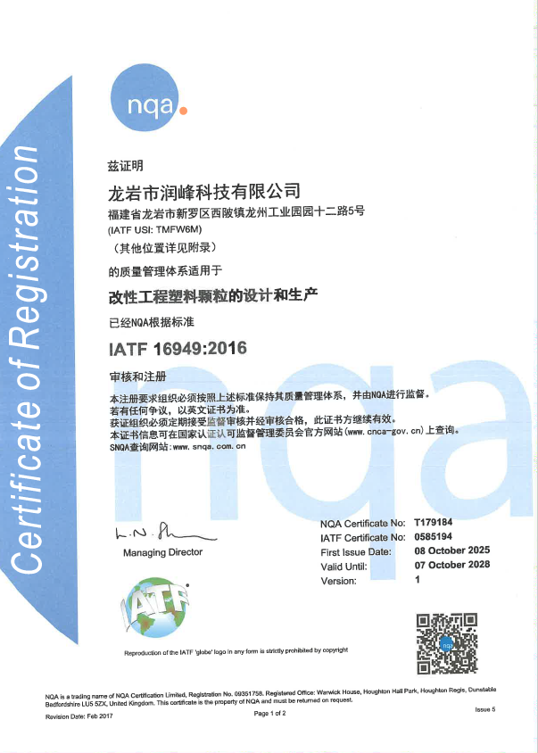 龙岩润峰16949体系证书